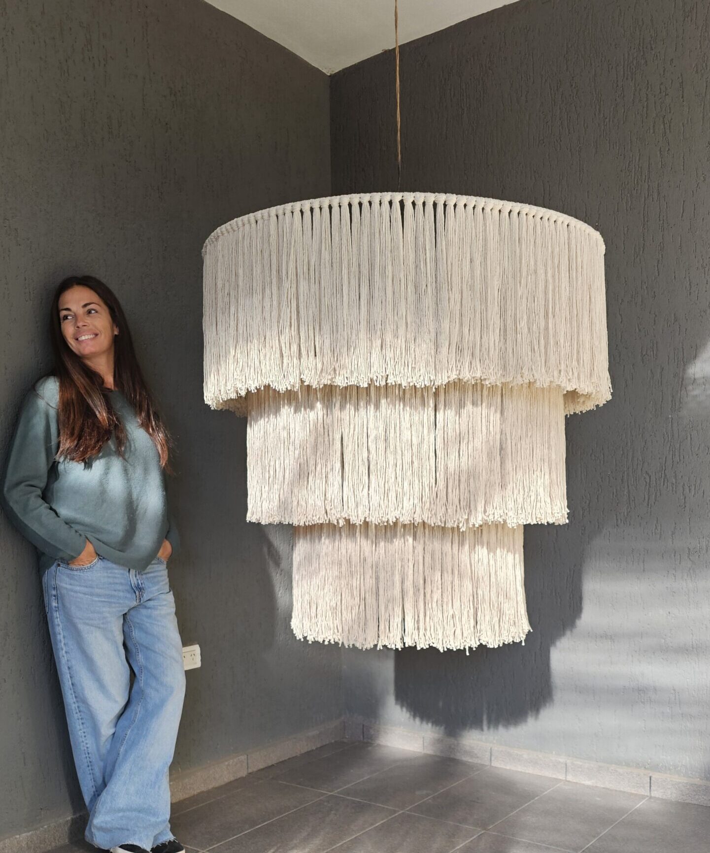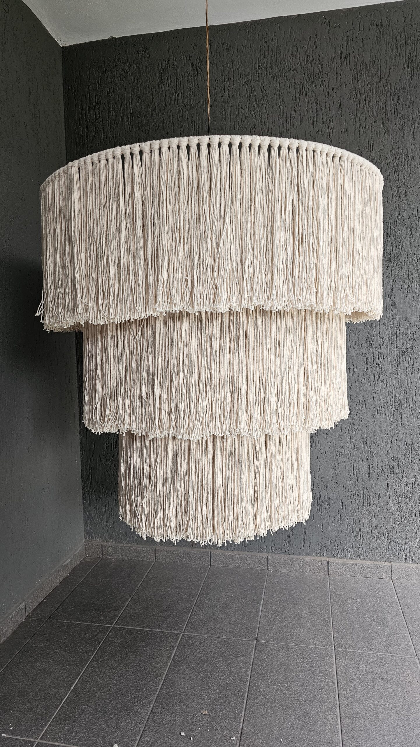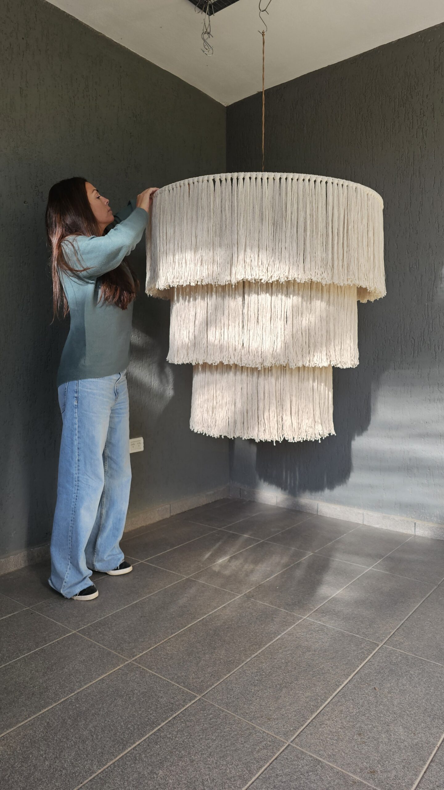 ESTRUCTURA DE HIERRO DE 3 PISOS CON FLECOS DE HILO DE ALGODON.