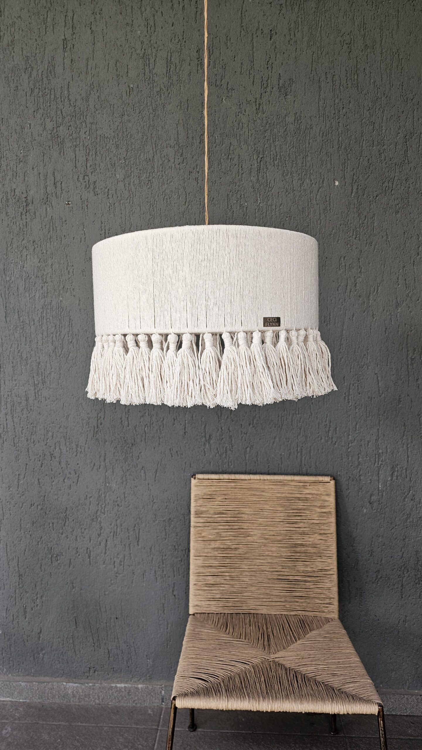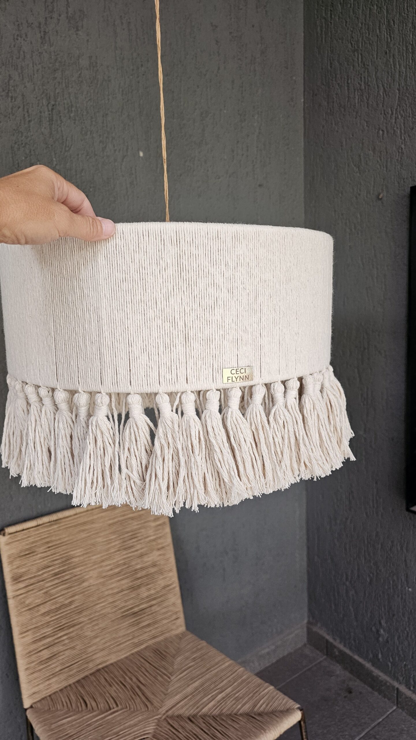 LAMPARA REALIZADA CON HILO DE ALGODON NATURAL.