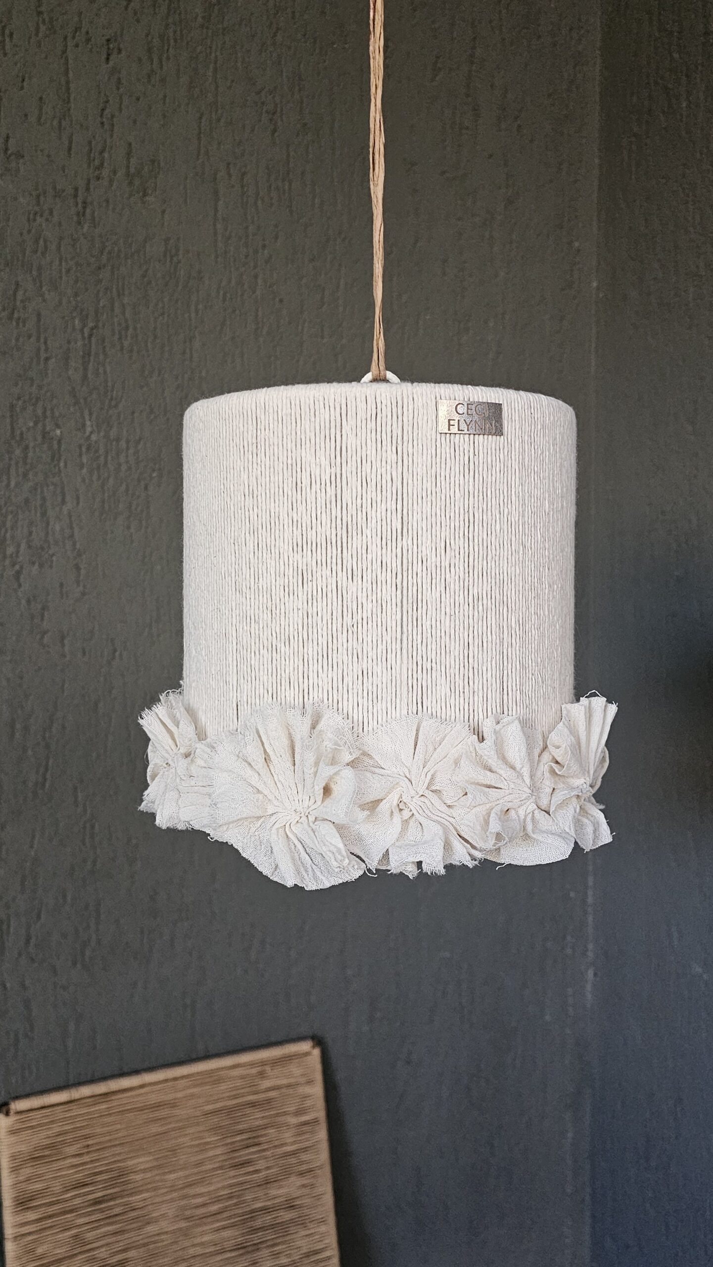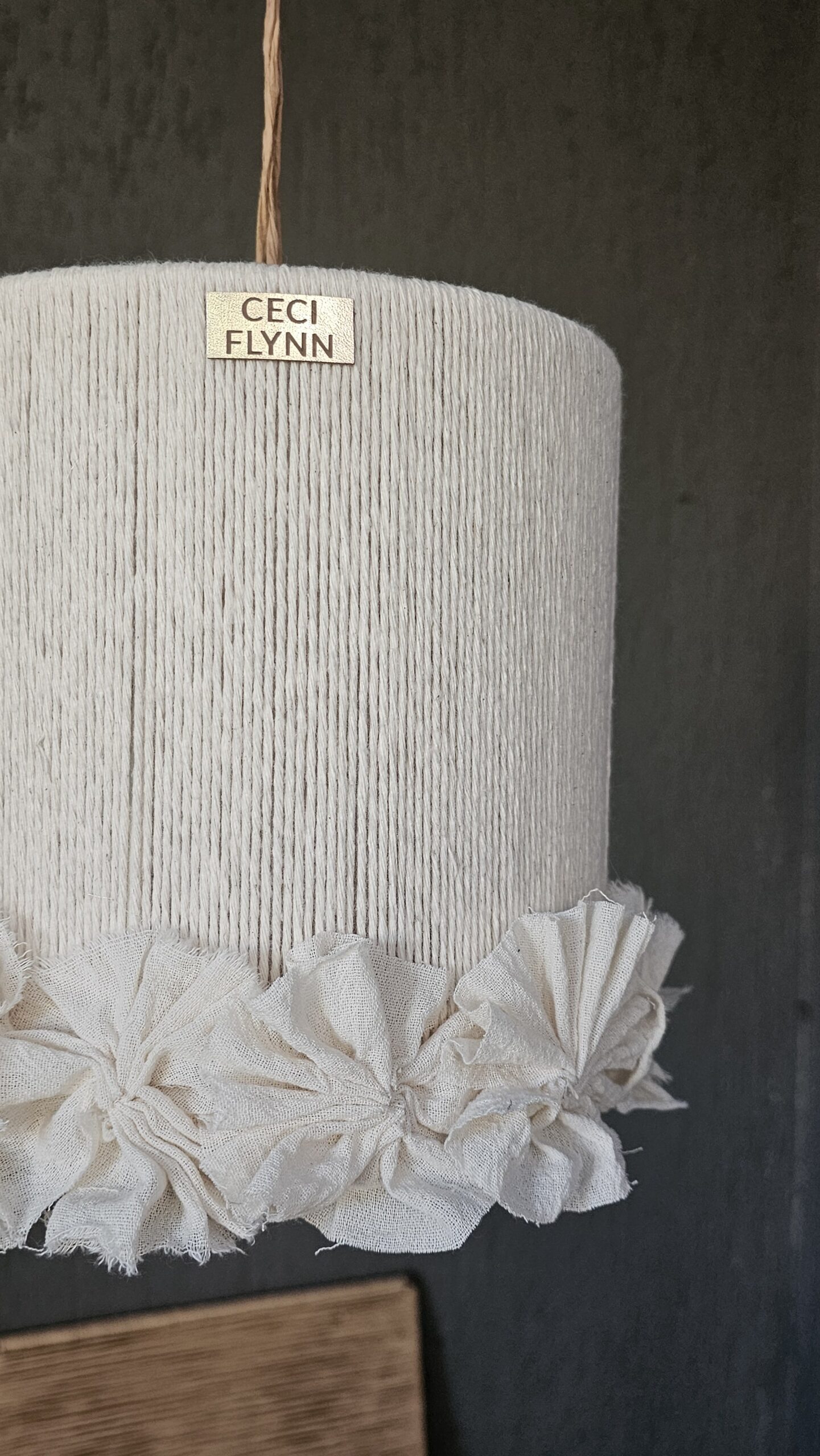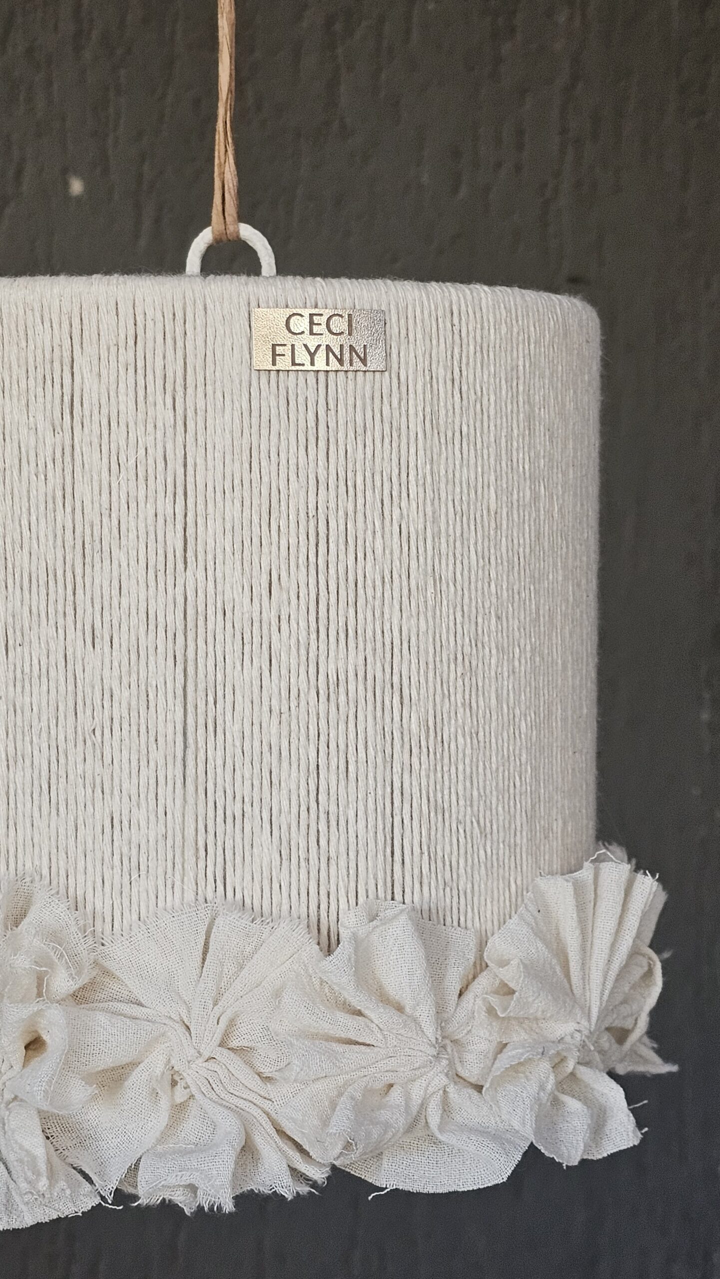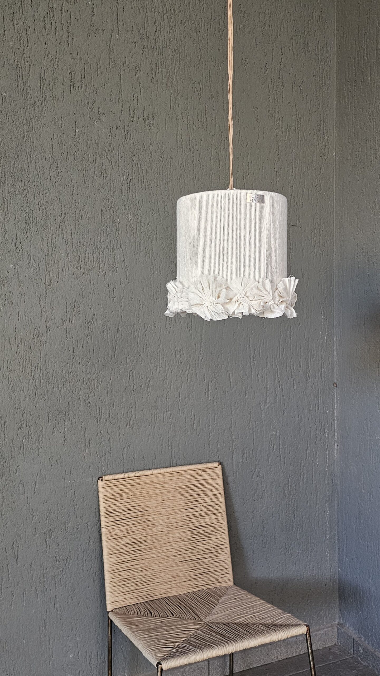 ENCORDADO CON HILO DE ALGODON NATURAL Y FLORES DE TELA